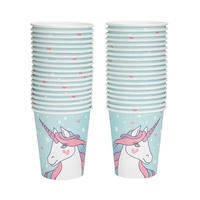 Tasses de papier de modèle de licorne vif jetable de carton de la vente chaude classique 250gsm 9 oz