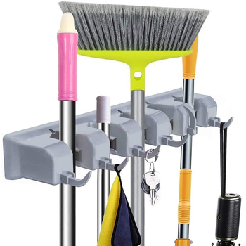 5 Position Wall Mounted Tool Organizer 6 Hooks Broom Mop Holder Tidy Organizer for Kitchen Living Room Garage & Bathroom